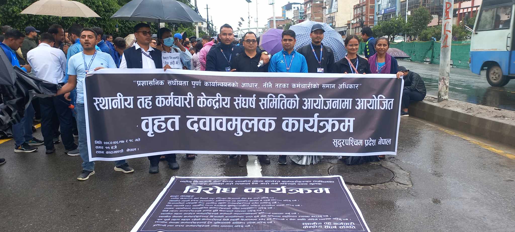 स्थानीय तहका कर्मचारीले छैटौँ दिन पनि २० बुँदे माग राखेर बन्दोलन जारी राखेका छन्। शुक्रबार काठमाडौंको माइतीघर मण्डलामा भेला भइ उनीहरूले आन्दोलन गरेका हुन्।