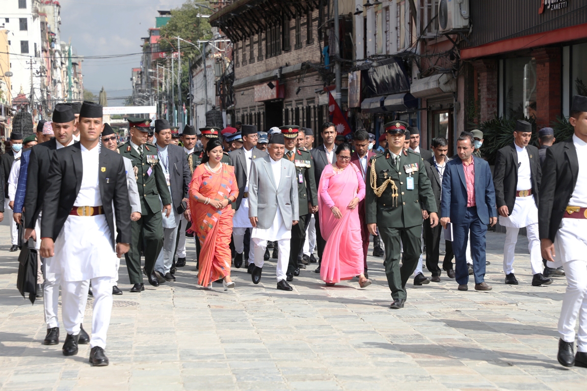 सर्वसाधारणलाई दुःख नहोस् भनेर पौडेल हिँडेर इन्द्रजात्रामा सहभागी भएका हुन्।