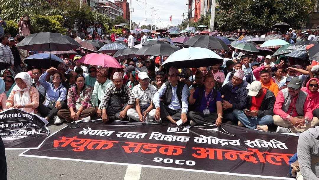 नेपाल राहत शिक्षक केन्द्रीय समितिको अगुवाइमा उनीहरूले माइतीघरमा प्रदर्शन गरेका हुन्।