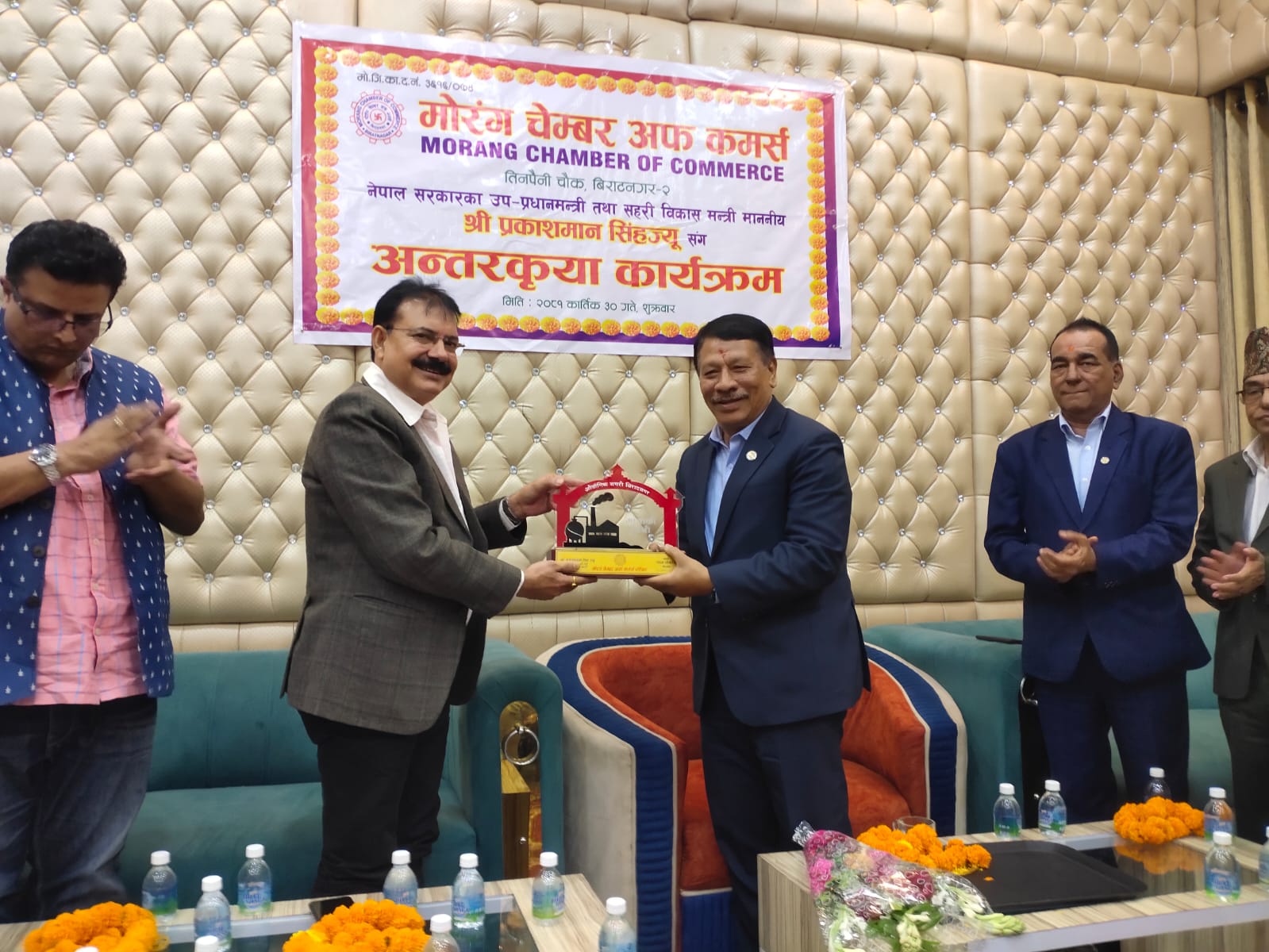 विराटनगर- मोरङ चेम्बर अफ कमर्सले नेपाल सरकारका उप-प्रधानमन्त्री तथा सहरी विकास मन्त्री प्रकाशमान सिंहसँग विशेष अन्तरक्रिया कार्यक्रम सम्पन्न गरेको छ।