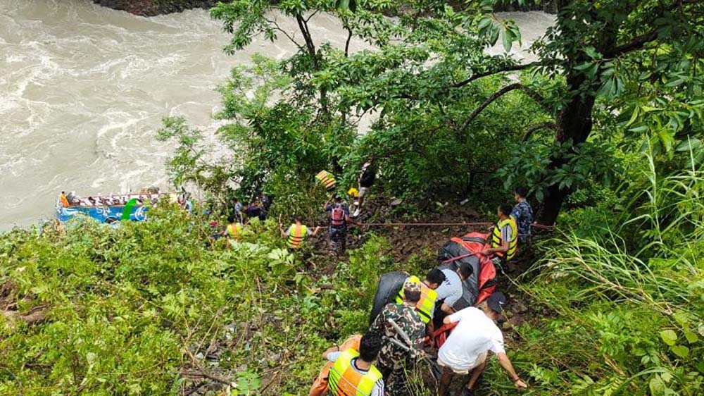 काठमाडौं- पृथ्वी राजमार्ग अन्तर्गत तनहुँको आँबुखैरेनीनजिकै भारतीय नम्बर प्लेटको बस दुर्घटनामा मृत्यु हुनेको संख्या २७ पुगेको छ।